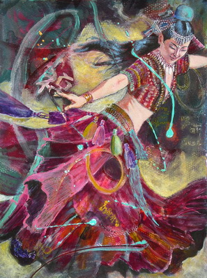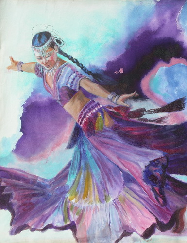 Seminole Swirl I, 30 x 22 in mixed media, new version. I like the way the face and hair evolved but I am not sure I like the background as much as I did before. Should I add the yellow back in? Would love to hear what you think of my changes.