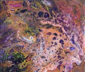 After seeing some other artists’ work on You Tube, I decided it was time to try create cells while pouring paint. I would become somewhat of a chemist and use alcohol, silicone, specific gravity and simple manipulations.