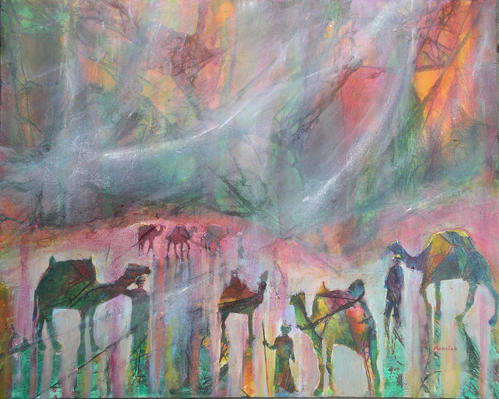 Silk Road Squall, 24 x 30 in, mixed media