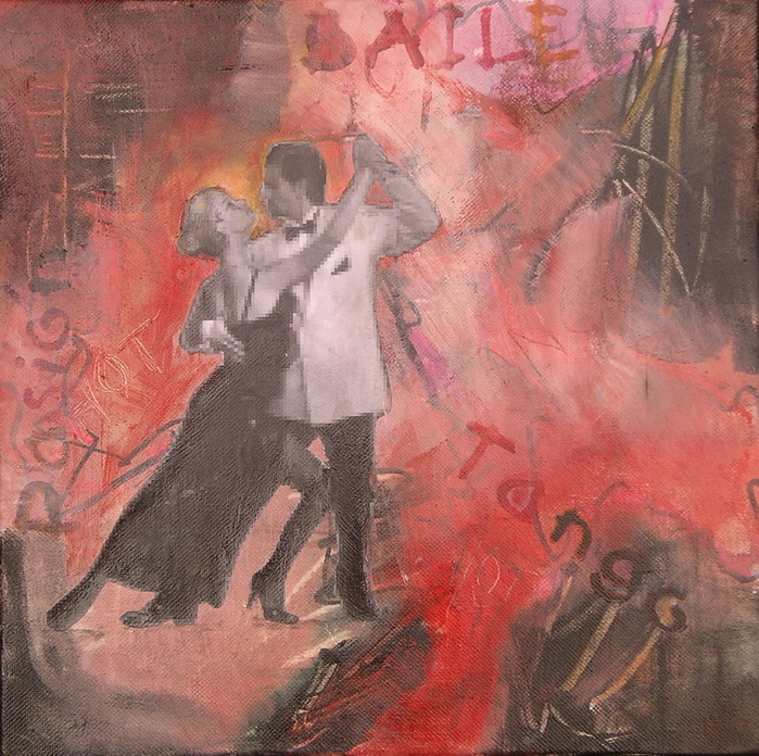 Baile con Pasion, 12 x 12 in, mixed media collage