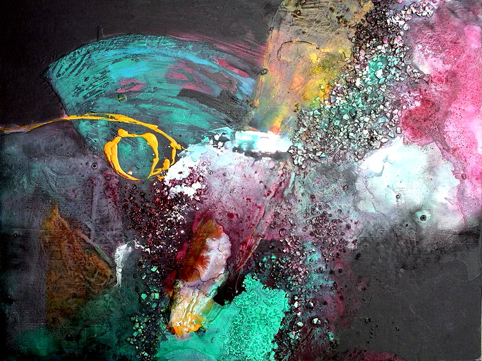 Dancing the Universe II, 24 x 18 in, mixed media collage