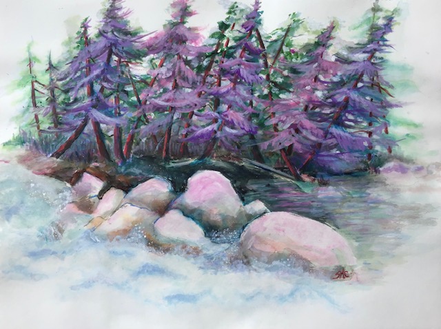 Gull River Rapids, 22 x 30 in, mixed media