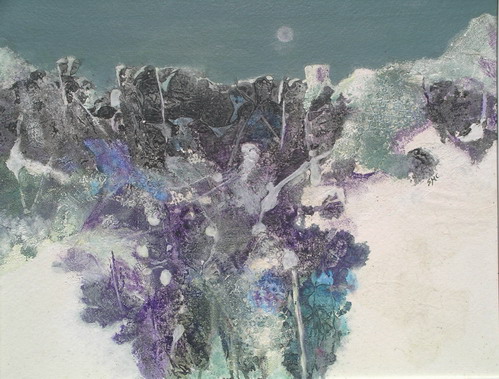 Ice Cliff, 22 x 30 in, mixed media collage on board