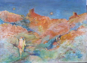 Moon Pilgrimage, 22 x 30 in, mixed media