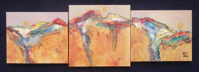 Tuscan Sun Triptych, mixed media on gallery canvas