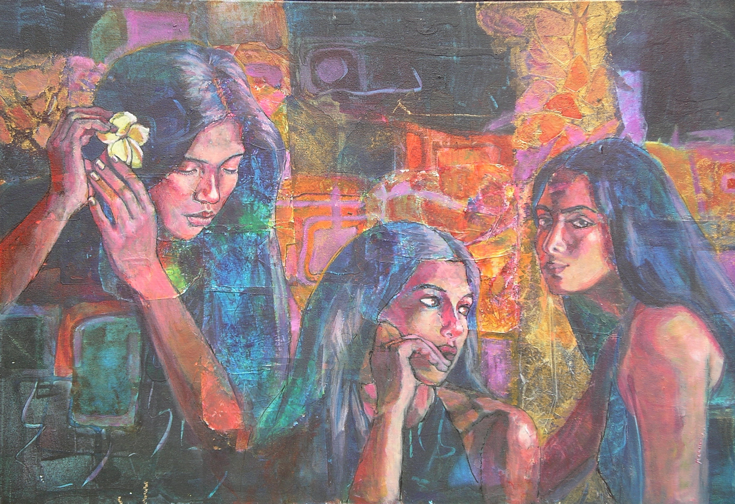 Sisters, 24 x 30 in, mixed media, collage