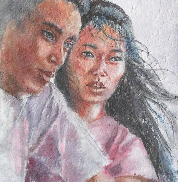Ferry Riders III, watercolour on canvas, 12 x 12 in SOLD