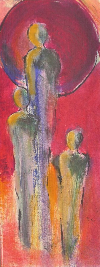 Umbrella Family, acrylic, 16 x 5 in