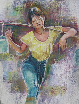 Boys Play, Girls Work, 12 x 10 in, mixed media