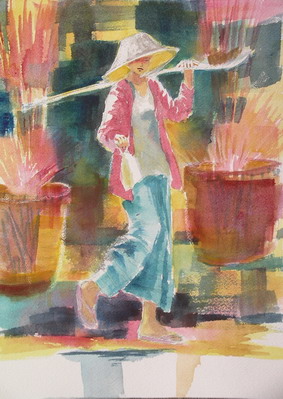 Don Det Vendor II, Watercolour, 12 x 9 in
