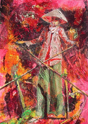 Floating to Market, 14 x10 in, acrylic