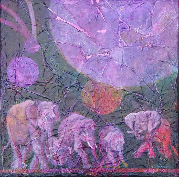 The Moon By Elephant Light III, 12 x 12 in, mixed media collage