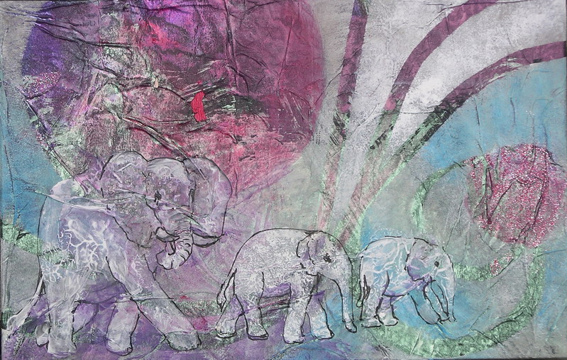 The Moon by Elephants Light I, 9 x 6 in, mixed media collage