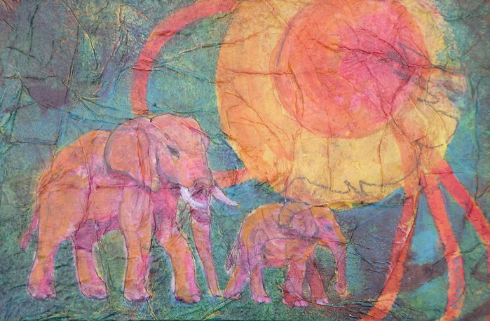 The Moon by Elephants Light IV, 12 x 12 in, mixed media collage