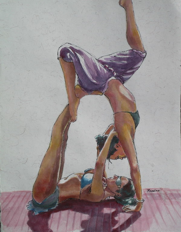 Acro Yoga Duet, 12 x 9 in, watercolour and ink on handmade Indian rag paper