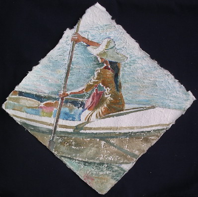 Inlé Taxi Driver III, 12.5 x 12.5 in, mixed media