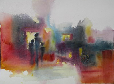 We Three, 9 x 12 in, watercolour on handmade paper