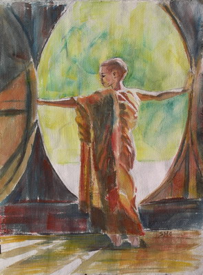 Young Monk I, 12 x 9 in, watercolour and ink on handmade paper
