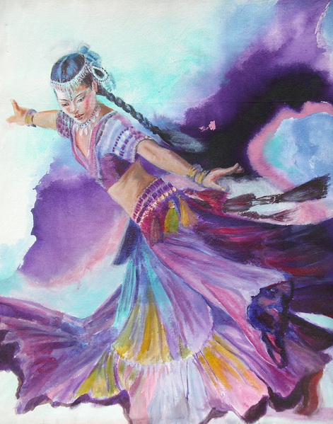 Scarf Dance I, 7.5 x 11 in, watercolour on handmade saa paper